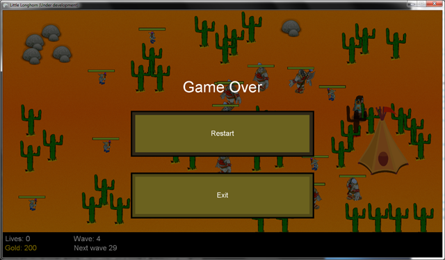 To help motivate our self, we set a deadline for when we needed to have a “playable” version of the game ready. Allan were holding his birthday/house-warning party Saturday 30th January 2010 and that became the deadline. It turned out that this deadline, even though it were just set by our self (keep in mind this is a hobby project) and no one really knew it or were expecting anything, help very much on the motivation for getting a “playable” version of Little Longhorn ready.